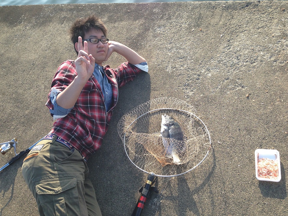 初めてチヌをつった田北氏!おみごと!