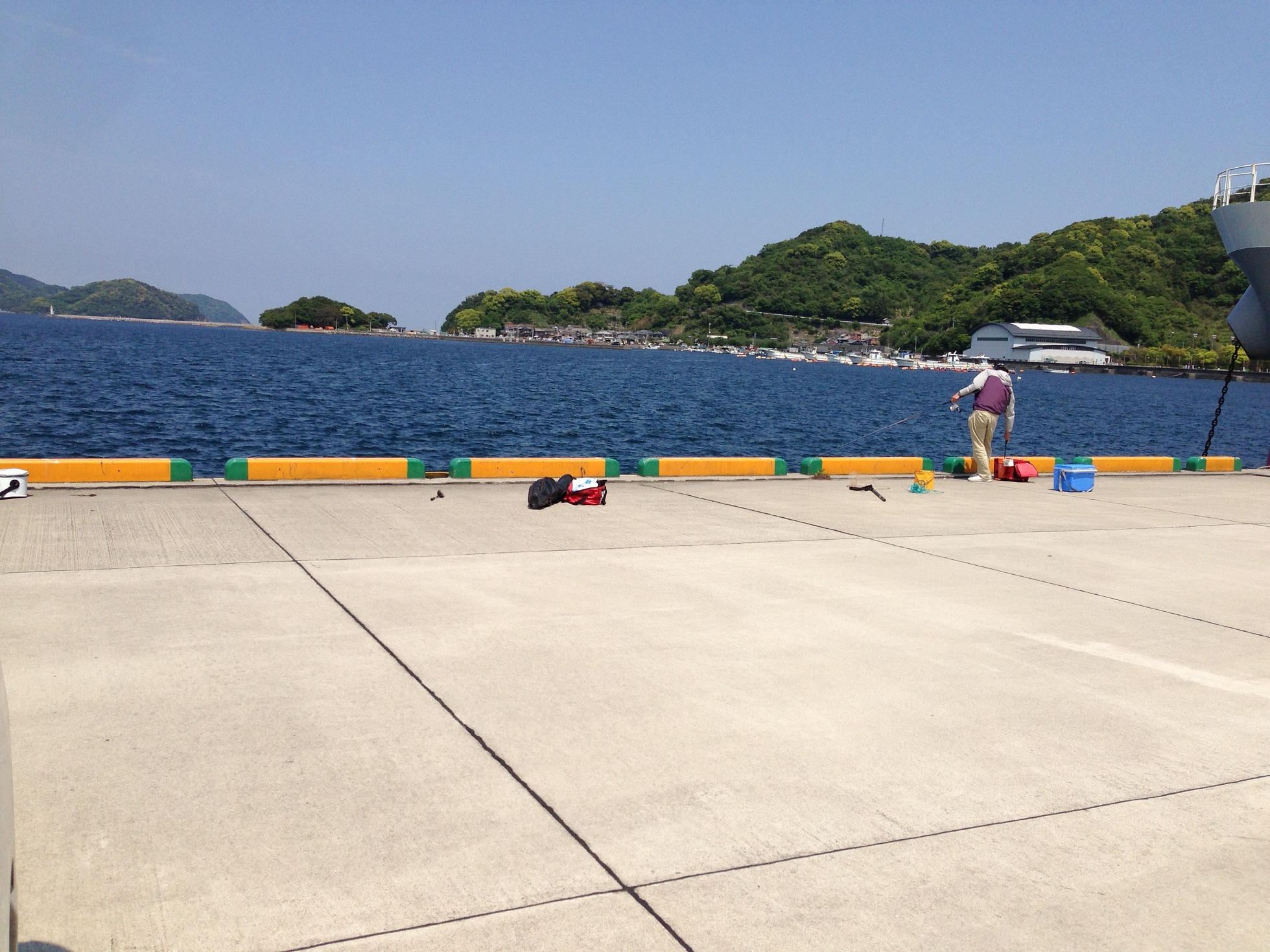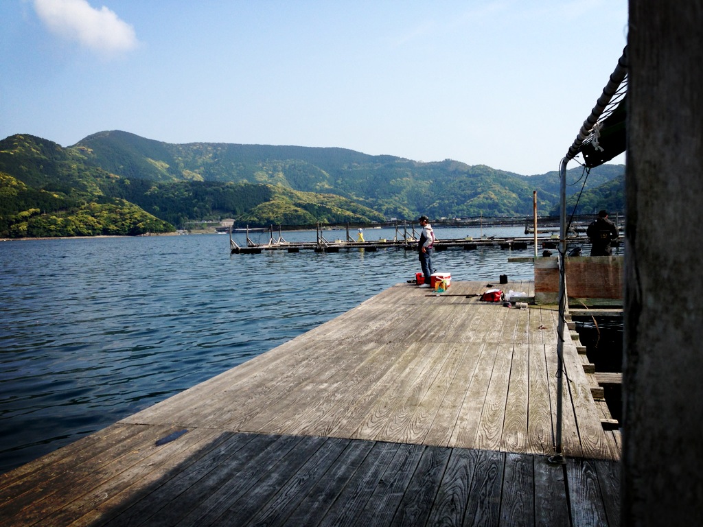 この日は、GWで大分に帰ってきている父ちゃんと、蒲江の筏に釣りに行きました。