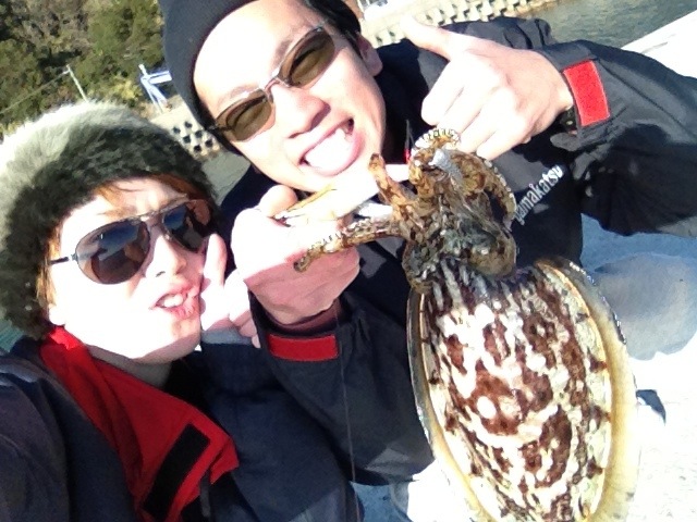 おまけに風も強いし。。。このままだと、この子釣りのこと嫌いになってしまう!!と風表の狩床から逆サイドの上浦の防波堤に移り、風を背に受けながら70~80メートルくらい大遠投の底ネチネチエギングを展開したところ、なんとかコウイカが2杯釣れてくれました♪♪