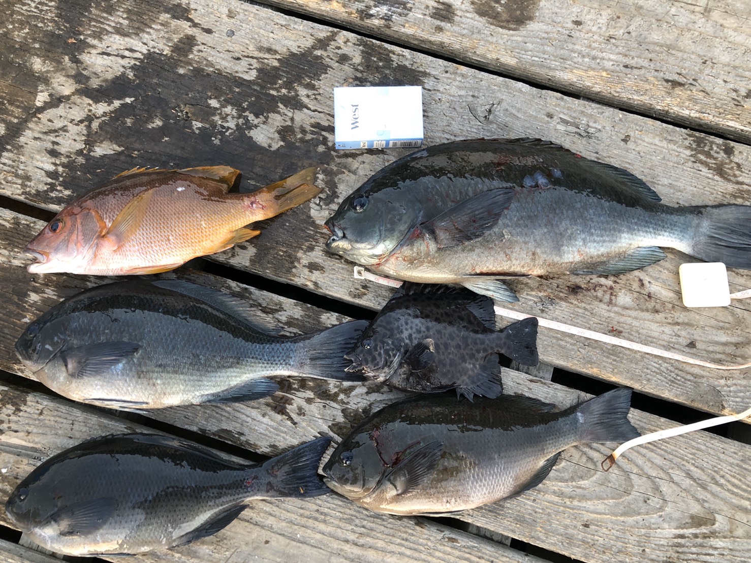 2018/12/30 Category : FISHING(クロ) 2018年12月30日 蒲江丸バエ2番 「スガ・中村」 こんばんわ〜。一年以上前になりますが、2018年の釣り納め釣行記です。 釣行者「スガちゃん・中村」 この日もてっちゃんは都合が合わず、一緒に釣りいけず。。。 当日は蒲江の丸バエ2番に上がりました。 めちゃめちゃ喰いの渋い一日だった記憶がありますが、私は40㎝程度のクロをポツポツ。 スガちゃんは、1発大物47㎝のクロをあげました!! 以下、写真ご参照! Witten by H.N にほんブログ村[0回]PR